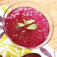 食感が楽しめる タピオカデザート 作り方 ① 鍋に水を入れ、沸騰してからタピオカ粒を入れ、中火で粒が透明になるまで時々混ぜる(約30分間)。 ② 火を止めてから