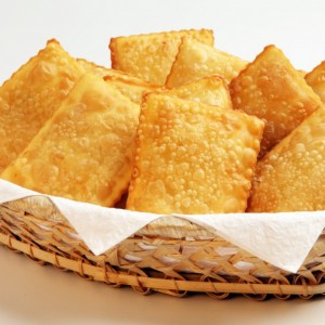 余分な生地を切り取る。 十分な油を中火で熱し、焦げないように気をつけながら、すばやく揚げる。