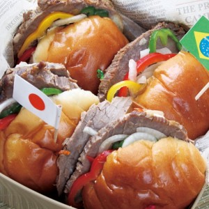 ⑧ピーマン、パプリカ、玉ねぎ、ビネガー、オリーブオイル、塩・胡椒でソースを作る。